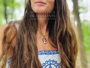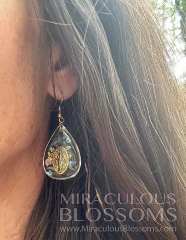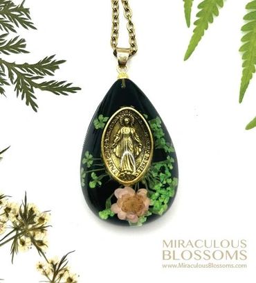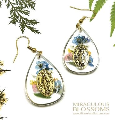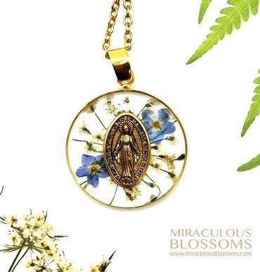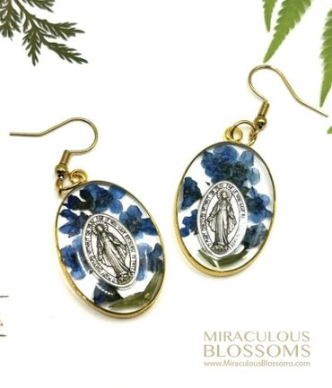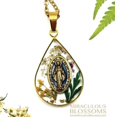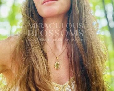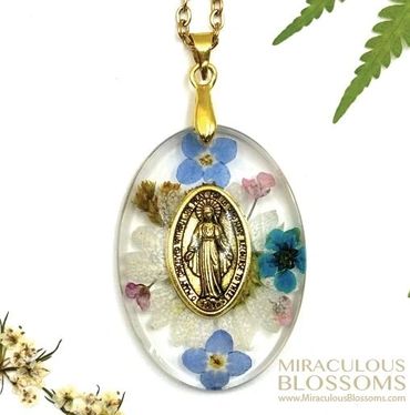 My desire was to beautify and refresh the traditional Miraculous Medal with floral designs and colors, to create something you will love wearing! I really look forward to wearing this beautiful religious jewelry, and I know you will too!
